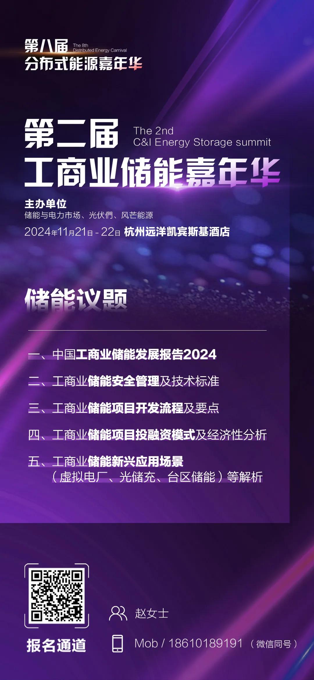 ]article_adlist-->笔据寻熵商讨院基于公开神情信息的跟踪统计,2024年1-10月,我国工生意储能项想法新增并网神情达到近950个,装机范围达到2.37GW/5.31GWh。]article_adlist-->了解更多国内工生意储能阛阓发展与趋势,敬请柔和行将发布的《中国工生意储能阛阓发展敷陈2024》。]article_adlist-->扫描文末二维码报名参与第二届工生意储能嘉年华议论会,即可现场领取《中国工生意储能阛阓发展敷陈2024(撮要版)》。2024年11月22日,第二届工生意储能嘉年华议论会将在浙江杭州远洋凯宾斯基旅店举办,会议将围绕行业的新变化,联袂各维度的参与者,共同探索发展的新阵势,探索新的旅途。