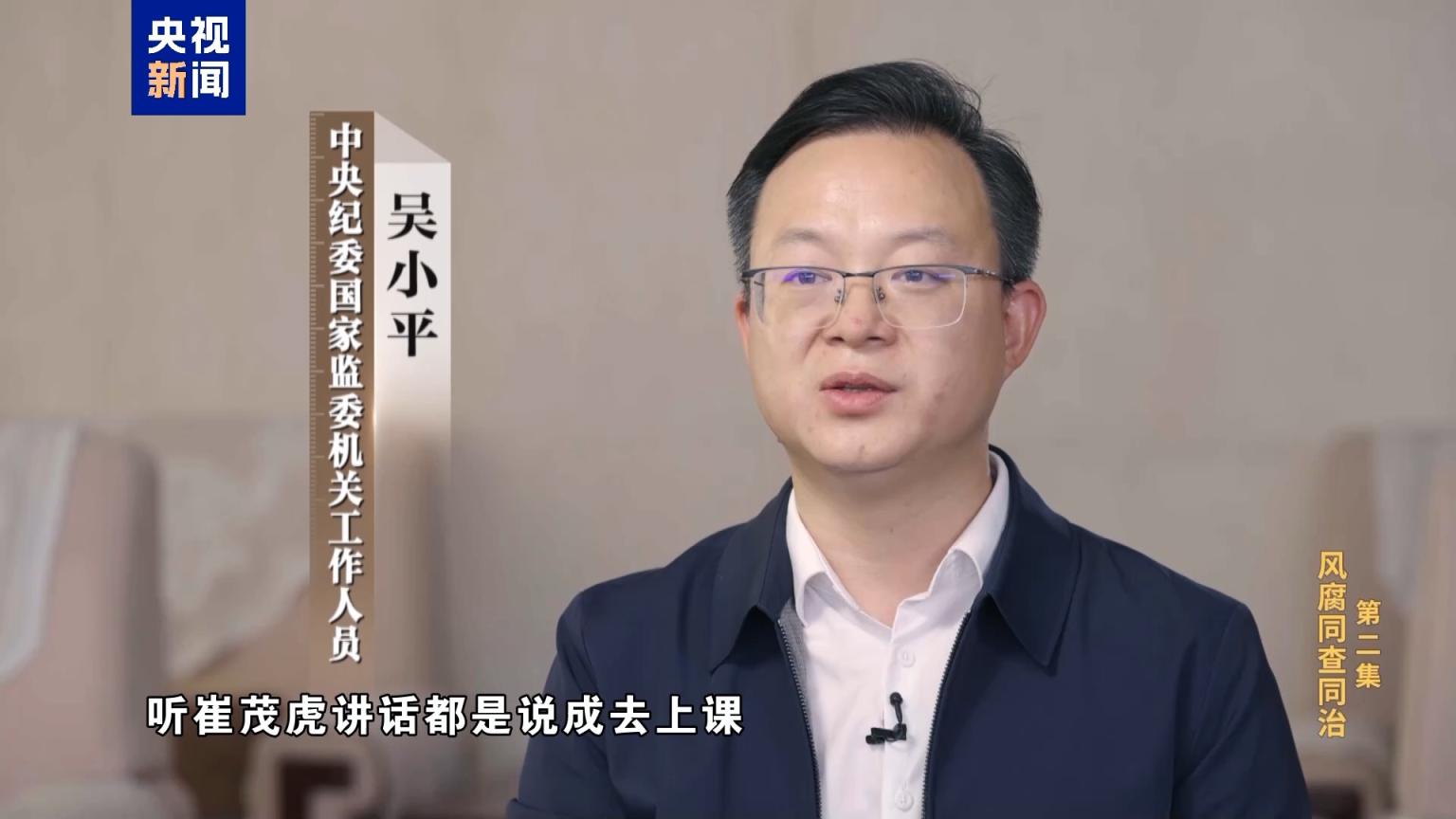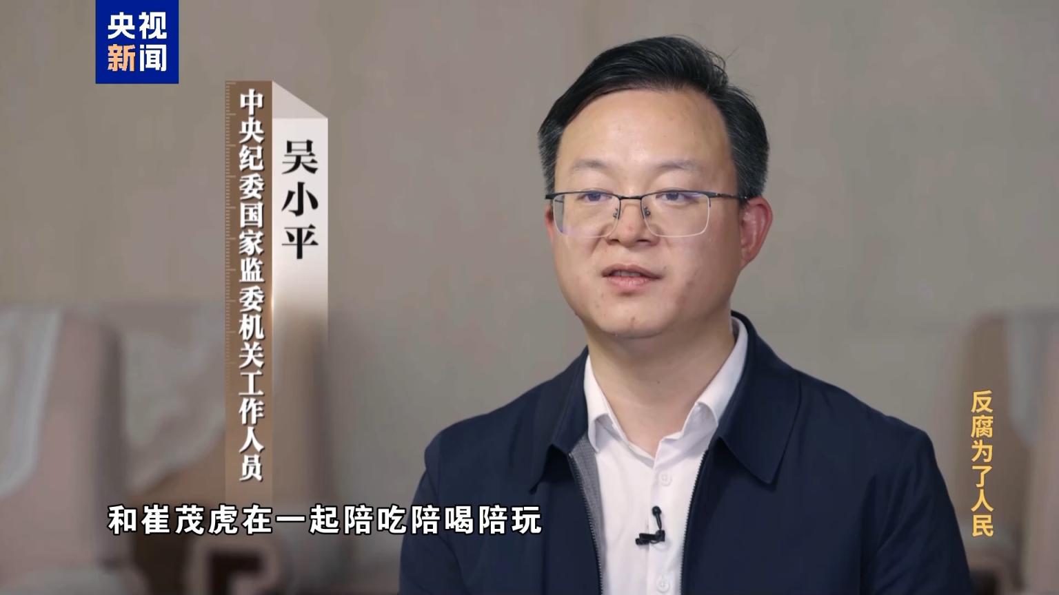 中央纪委国度监委机关责任主谈主员 吴小平:由风及腐,风腐一体,它是一个法子,崔茂虎案件等于这样一个典型。违警商东谈主先是通过和崔茂虎在一谈陪吃陪喝陪玩,来拉扯关连开拓情态,终末才发展成为权钱买卖,利益共同体。