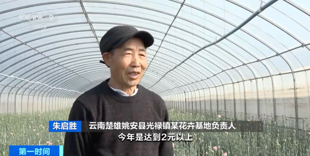 云南楚雄姚安县光禄镇某花草基地认真东说念主 朱启胜:旧年价钱是0.6元一枝,本年概况达到2元以上,平均价钱皆是在1.5元以上了。