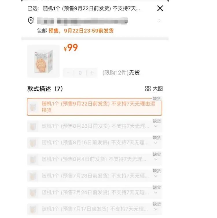 记者矜重到,在泡泡玛特天猫旗舰店直播间,预售订单发货日历已经排到了9月22日。